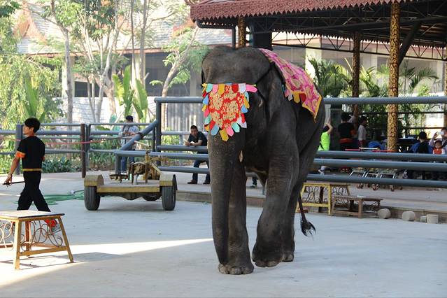 花大象,表演完后还要驮着游客照相。真希望自己只有五岁,可以让大象把我卷起来就好了。