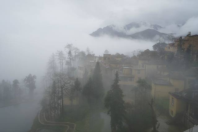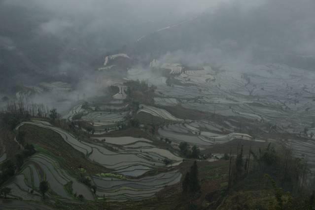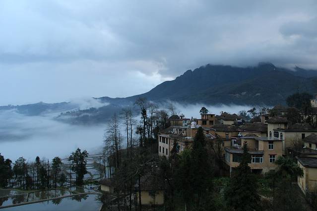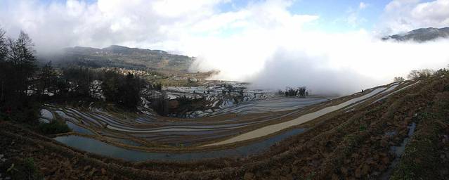 早起吃过米线便准备行囊去看日出。在云遮雾绕中看到了太阳升起那一刹,一两块梯田的色彩变化。心里小小的满足了一下下。