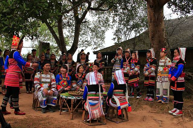 在这里你可以看到“牛角字”、“大鼓门”、“牛头路”、“创世女神阿膜腰北塑像”、“太阳花坛”、“敬酒迎宾”、 “基诺族五神柱”、、“卓巴房”、“织‘砍刀布’”、“基诺大鼓舞”、“打铁” 、“刀山火舞” “染布坊” 、“竹工艺展示” 、“民间酿酒”等。还有打耳洞的基诺族女人。