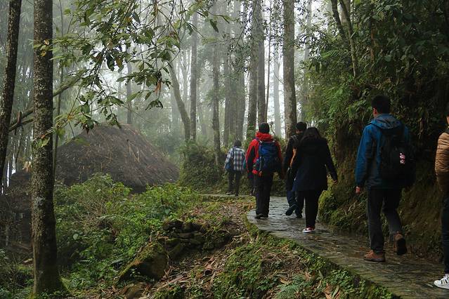 然后多数能看到便是大雾中这样的景色。雨也是悄悄降临。计划中早起便开始的徒步只能先缓缓。