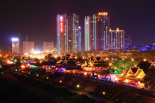 西双版纳大桥上的夜景,美的让人心醉。热带的风吹着,夜间也不会嫌冷。