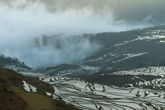 感谢天晴了那么一点点。这样的梯田不管用什么角度什么镜头都能拍出它的美!