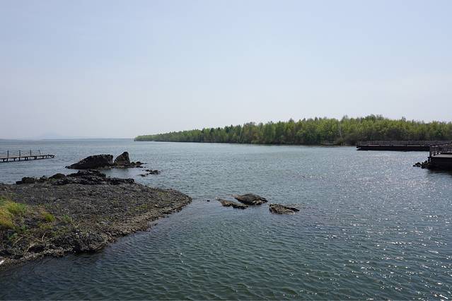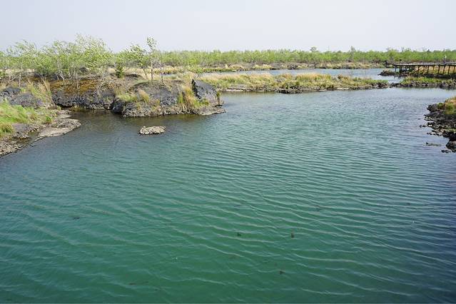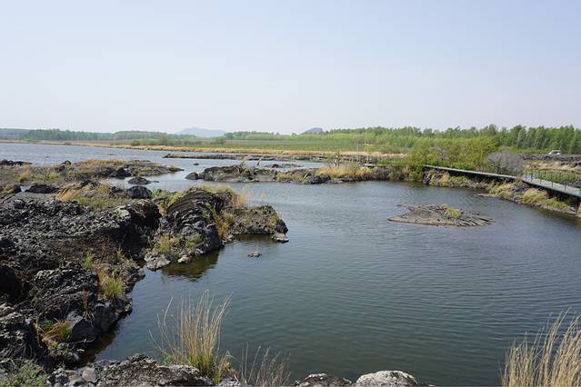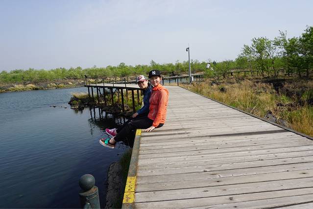 下车后,沿着栈道走进去游览,看到的便是三池景观,火山形成的最大的堰塞湖。夏天旺季的时候可以乘船游览,我们去的时候还没有船只在工作。