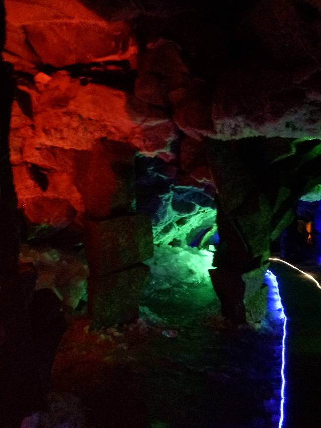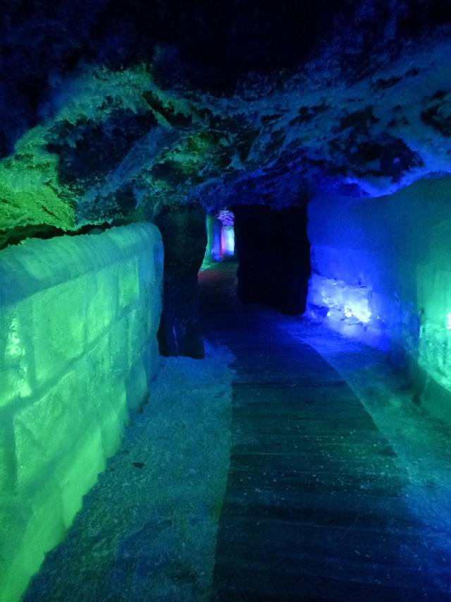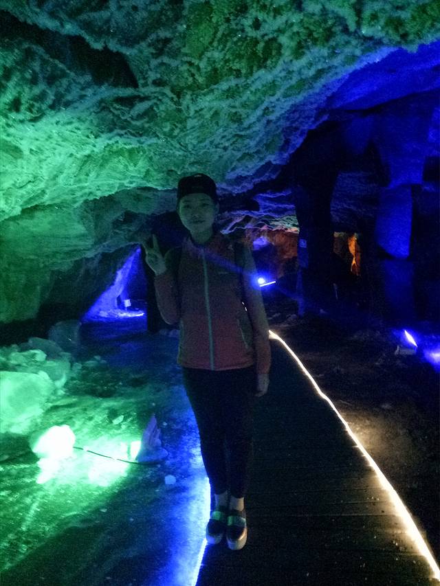 地下冰河景区,门票20元,学生票半价。火山爆发后形成的地下溶洞景观后期加上了灯光和一些冰雕。地下温度确实有点儿冷。女汉子的我只穿了一件防晒服就进去了。只好匆匆看一眼便跑出来了。由于在东北呆四年了,对冰雕这些已经不稀奇了,总的来说也值得去。