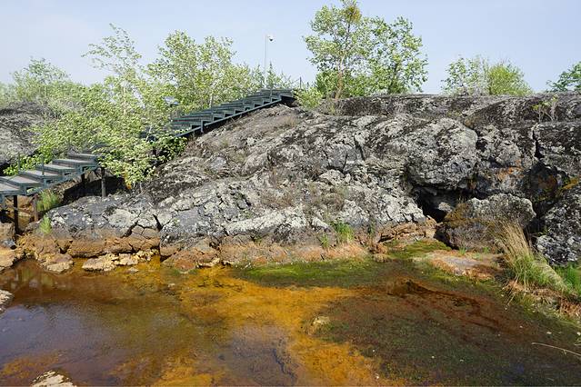 第二站来到了五大连池博物馆。外表看着还好,但里面确实有点寒酸。博物馆分两楼,楼上有个放映厅,放火山纪录片。楼下是个展厅,墙上贴了一些有关火山的宣传知识,中间摆了一些火山石。之前收20元的门票,最近变成了免费了。很快就可以参观完,十到十五分钟吧。新区有一个新的博物馆正在建设中,那个应该会挺好的。