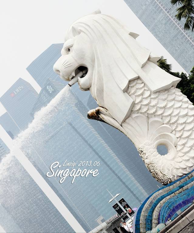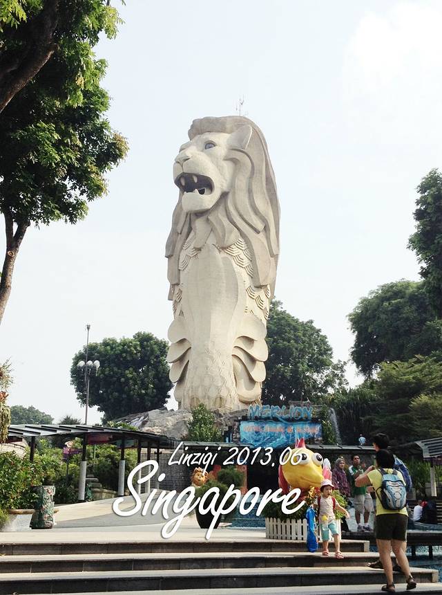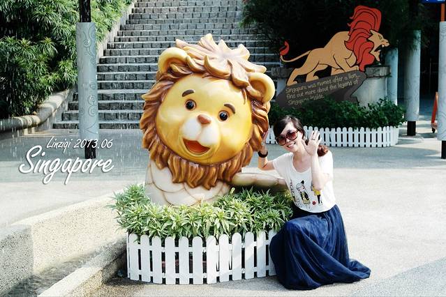 从环球影城出来再坐一站,到英比奥站,那里有个鱼尾狮像塔和摩天塔,这两个上去都要另外买票,穷屌丝表示在外面看看就好了。在那里当然主要还是跟这个小家伙合影。还有一个其实更可爱,可是旁边有个人在长椅上碎觉。这么热的室外,他居然能睡得着。
