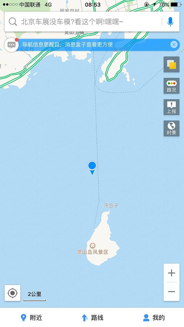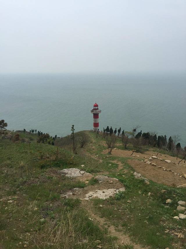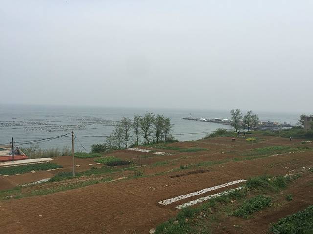 忧郁却兴奋的心情替我抵挡了四月底刺骨的海风,一路上看着海水由黄变绿变蓝。快艇在广袤的海上行驶,还会碰到一艘一直在周围海域巡逻的军舰。靠岸后,电话联系了农家乐的老板娘,很热情的店家,一路上和我们介绍灵山岛,还告诉我们还有别人入住,他们已经和她的丈夫一起外出海钓了。