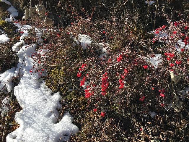 不知名的红色浆果,生长在雪线以下,漫山遍野。表皮微微起皱,内里汁液饱满,用手轻轻一捏即爆浆像鲜血一样四处流淌。它所生长的地方,滴水成冰,果浆在枝头却如置于常温,可见植物体内也有不可小觑的生命能量!