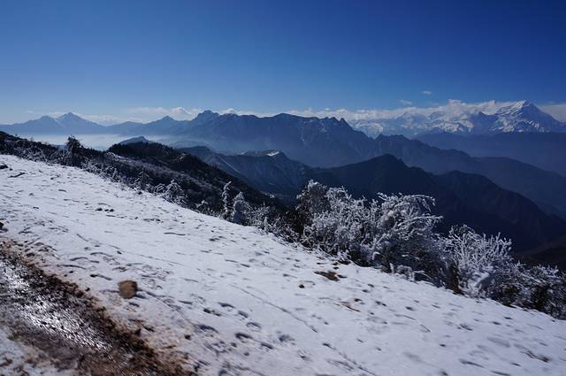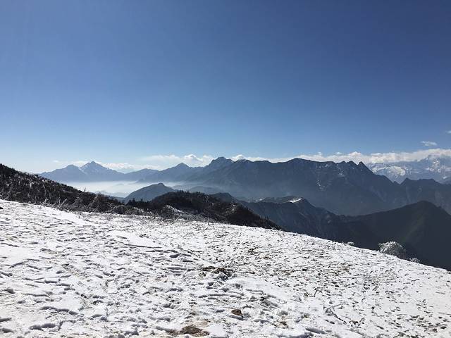 牛背山的雪非常干净,本来想用纯粹一词,又觉得始终还是不如北方的大雪那么一望无际的直击人心。但对于我们这些长年见不到雪的成都人来说,还是算得上惊艳了。相对于峨眉山、西岭雪山这些成熟景区,牛背山的雪洁白无暇、星星点点,随意的洒在路边、挂在树梢、任性而自由的装点着荒山。不远处的贡嘎如同高清HDR,巍然矗立。