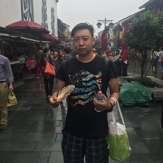 北方大汉不适应杭州闷热的天气,买个小扇子伺候着。哈哈。。清河坊路边小店购买,售价10元。