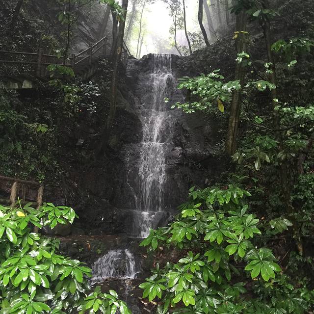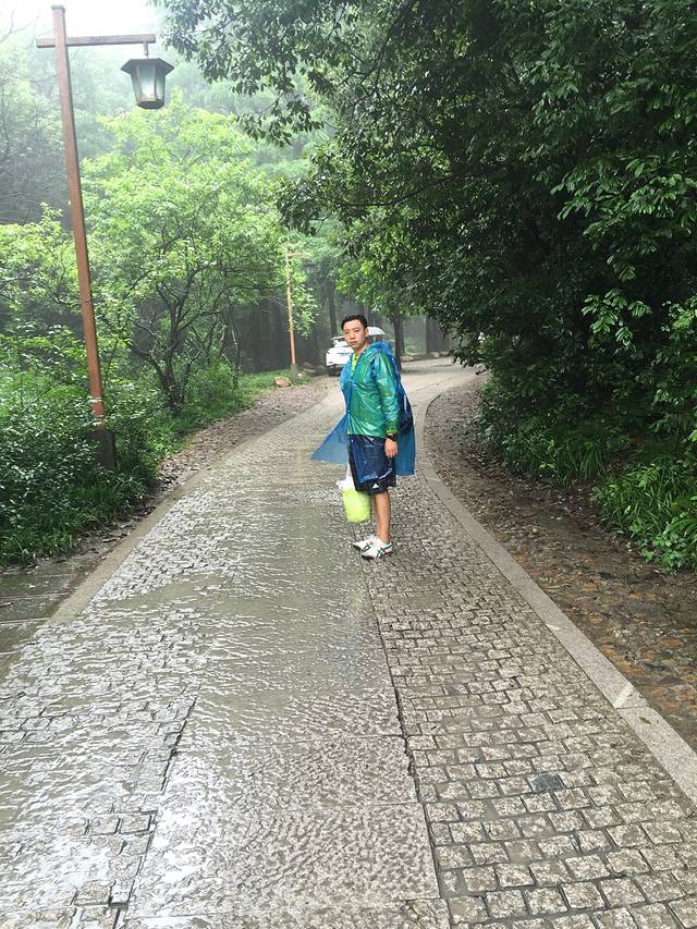 从吴山广场坐7路公交车(2元/人)到九溪下车,路上可以看到杨公堤等景点。下车后有拉黑活儿的司机,一个人5块钱,直接拉到景点,实际上九溪就是一个小的不能在小的瀑布。杭州的天就跟小孩儿的脸一样,刚刚还闷热的要死,下了公交车,直接下雨了,而且还不小。雨伞都不行。果断在九溪边小亭子里,跟当地老乡那儿买了雨衣(每件15元,共计30元)。