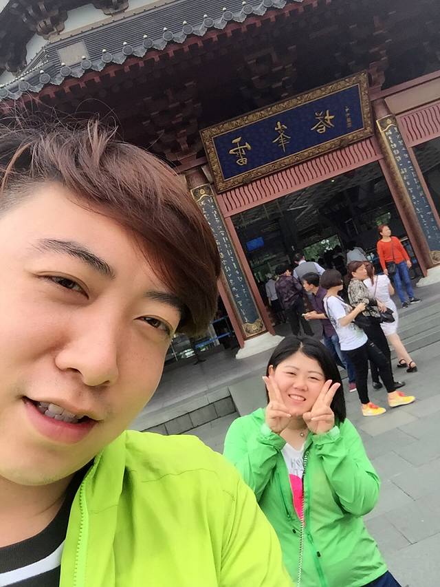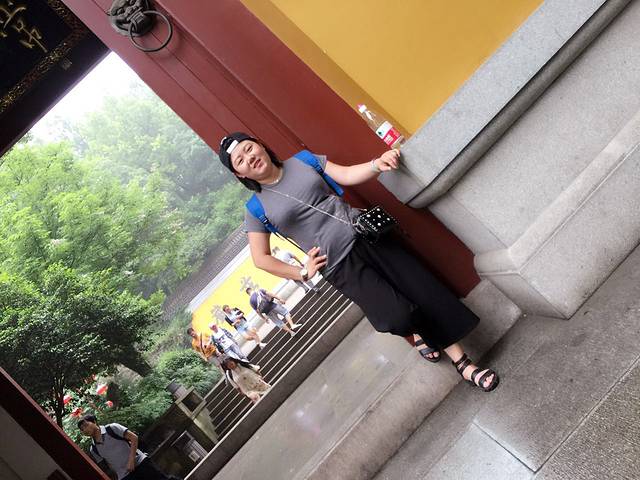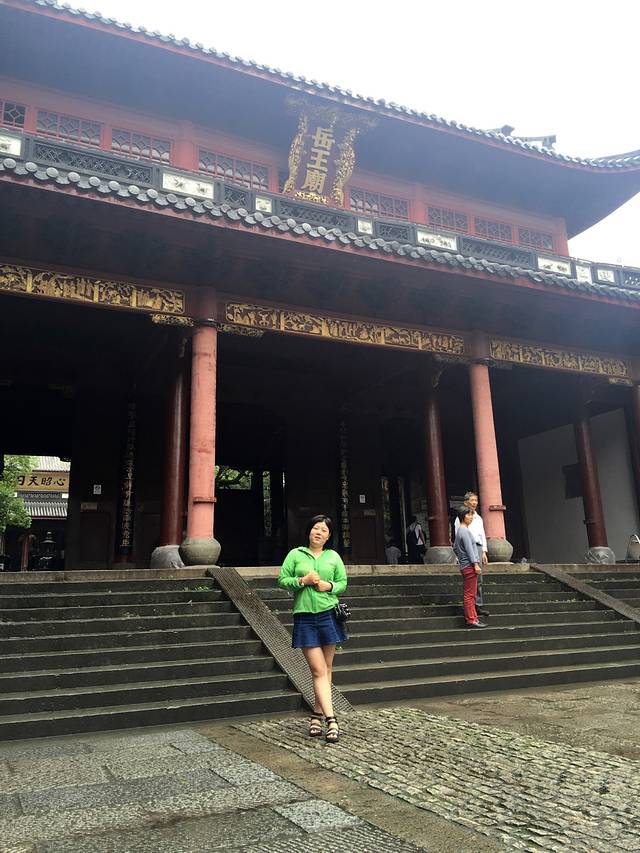 这个是永乐寺门口,老公和我都走不动了。只在门口看了看,然后就坐电瓶车出山了。(出灵隐寺往山上走一点就可以看见有,电瓶车是10元/人,围绕飞来峰逆时针3公里观赏,路上有智能讲解,直接送回景区大门。)