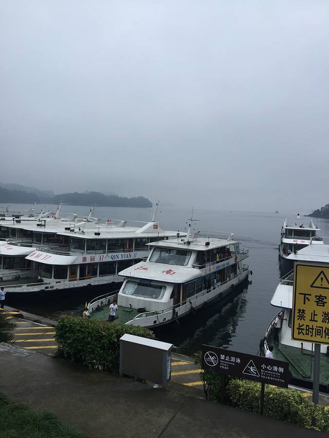 正式开始千岛湖之旅。早上退房时,前台帮忙代买的门票,与在景区一个价钱,215元/元(包含门票和船票)。个人建议,早点出发,不要延误坐船。打车直奔中心湖区码头,7点半左右到达。找到旅行社取票(千岛湖不管是散客还是跟团,都会有导游。全部讲解都在船上)。