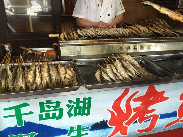 千岛湖特色烤鱼,烤鱼的师傅说叫浪里白条,按照大小价钱分别是5元、10元、20元。我们吃的10元的,特别好吃,烤的外焦里嫩,而且特别香,一种纯天然的感觉,没吃够啊。。。