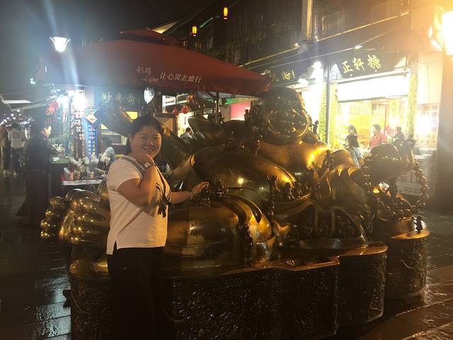 清河坊街路中间的弥勒佛铜像,摸摸沾沾喜气。