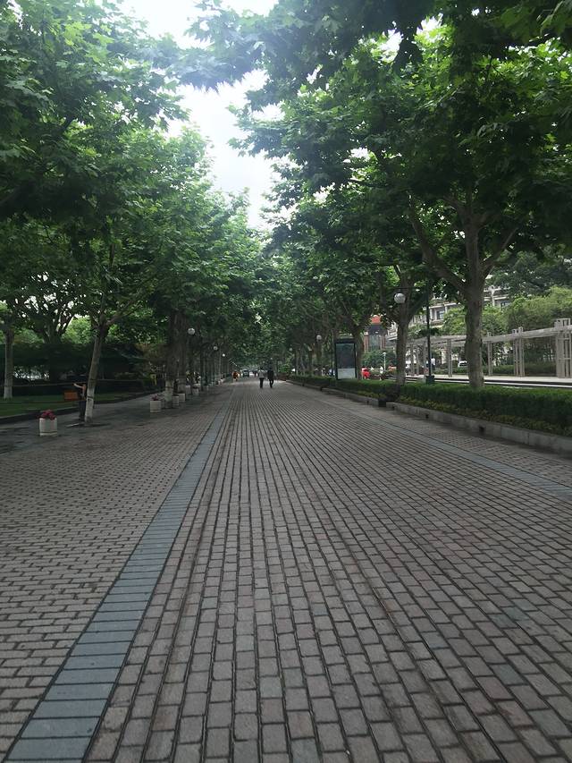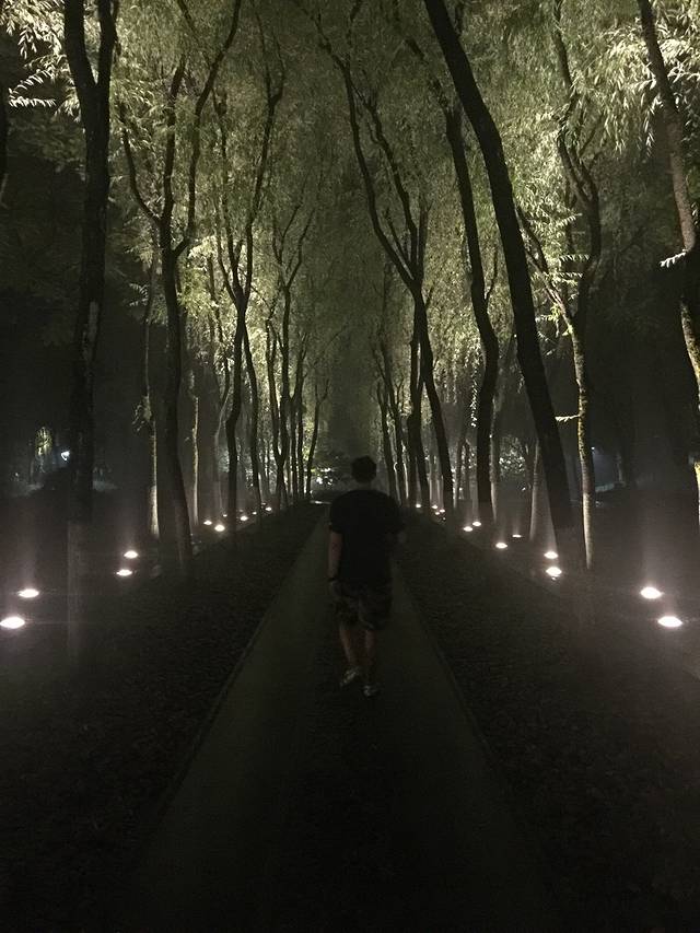 进入景点后就是得以命名的垂柳小径,正好赶上雨越下越大,昏暗的地灯照着绿色,两个人一起打着雨伞,走在小径上,只有两个人,请自行补脑画面。