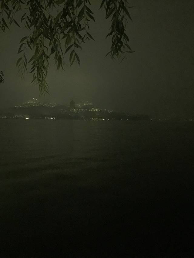 清河坊街走出来,一路直行,路过吴山广场,马路对面就是柳岸闻莺,西湖景点之一,小公园一个,直通西湖岸边,虽然天色很晚了,不过景色还是很美的。