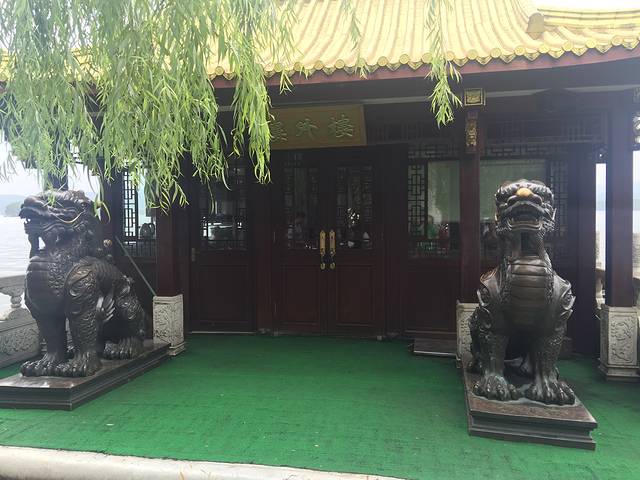 杭州百年老店楼外楼在西湖边放置的船。出租车司机说,楼外楼只是名气大,味道一般,而且较贵,不够经济,所以没去吃,只是看了看,哈哈。,