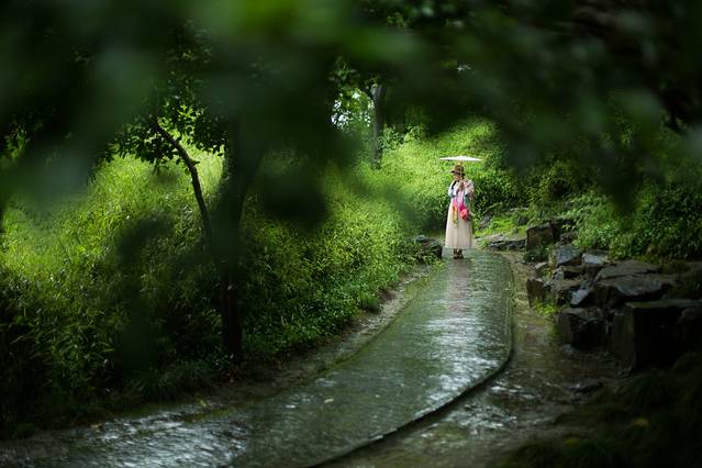 不得不说,这把伞买的实在是很成功呀,因为下雨所以必须打伞拍照,而这个时候有一把漂亮的油纸伞是非常加分的呢。