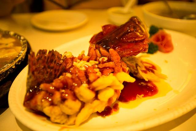 松鼠桂鱼,鱼不错,不过糖醋味比较重,跟糖醋鲤鱼差不多,但是肉质比较嫩一些。