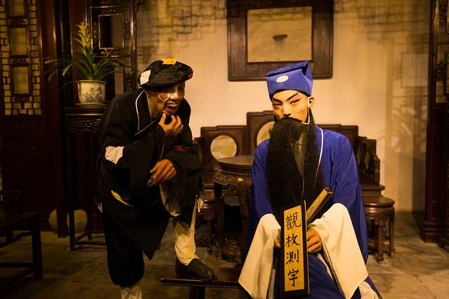 今晚的第一个表演项目,讲的是县令机智地让贼人伏法的故事。虽然用吴侬软语唱出来,并不能全听懂演员所说的内容,但是一举一动都是戏,一个眼神,一个动作都惟妙惟肖,尤其是反派人物,真是自带贼眉鼠眼的属性,非常棒。