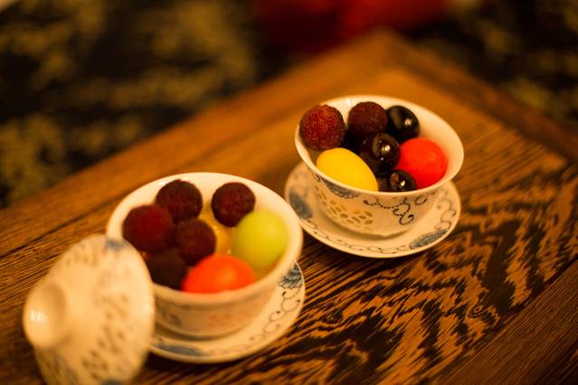 苏州非常多买这种五颜六色的果子的,如果问的话,他们会说是树上长的,但是非常坑,价格还好,不过齁甜齁甜的,应该是腌制的某种蜜饯吧,颜色太过鲜艳也不太敢吃,不过很好看。非要尝试的话,最好不要在景点出口那里买,价格会贵,稍微走出去远一点的地方,价格会便宜一些。