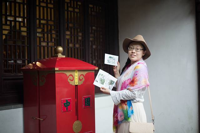 门口有这样中国风的邮筒,直接把明信片寄出去就行啦。