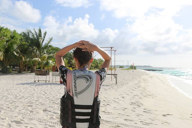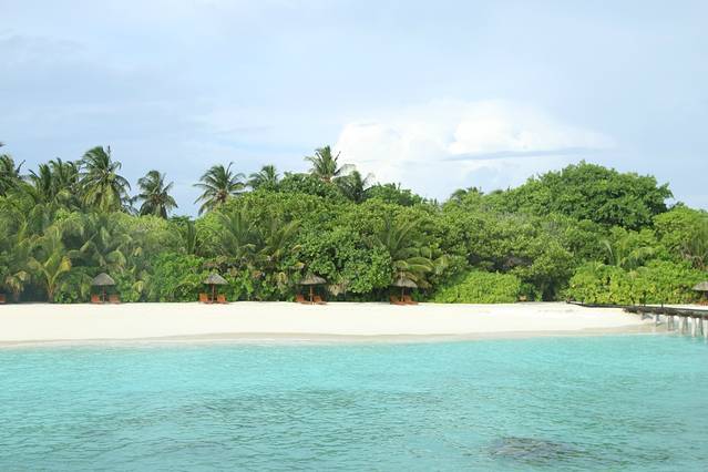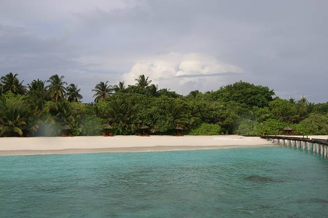 这次选的岛是Adaaran Meedhuparu,一价全包,岛上植物繁茂,还有沙滩环绕,浮潜A级,还有一个巨大的焦糊,是水上运动的好地方。