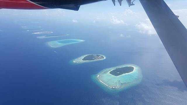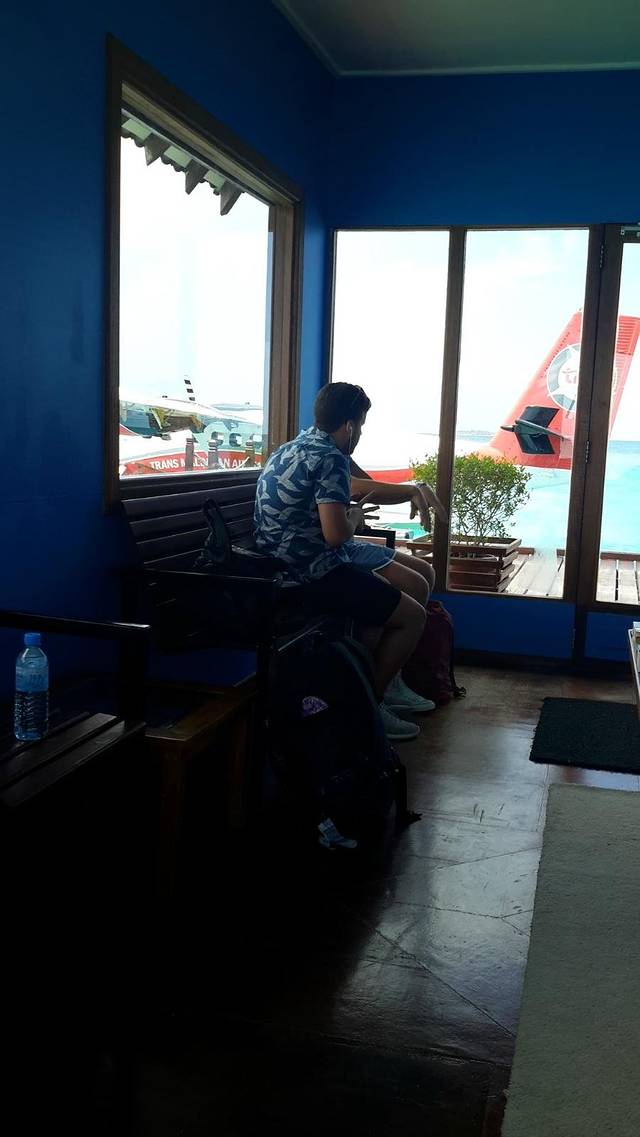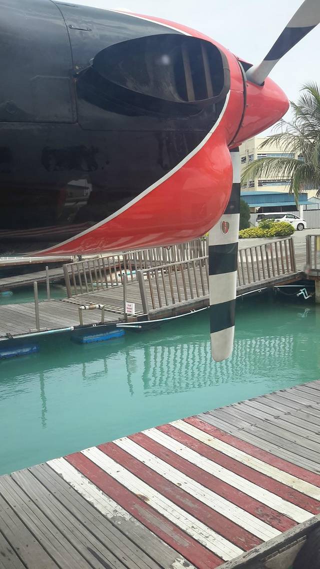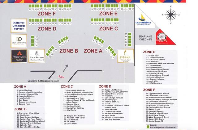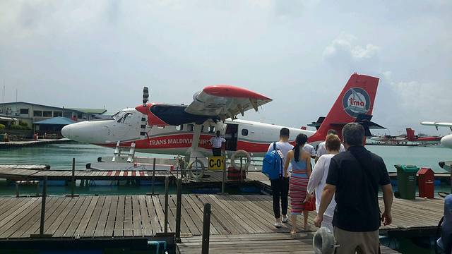 到了机场,一下子就感觉到了印度洋的潮湿和炎热,顺着人流进行过关领行李,之前在飞机上都会填一个入境单,很简单,填写一下给海关的就可以了,因为马尔代夫是落地签,很方便,拿了行李出机场就可以找自己酒店的接待人员,然后他会引导你去托运行李和安排摆渡车,因为我们是水飞,所以直接安排我们去b车,行李托运好就不用管了,手续非常方便,上传一张机场的平面图,可以找到自己酒店在哪个区域。坐汽车到了水飞休息室,休息室提供饮品和小点心,但是我们的时间非常好,等了不到20分钟就水飞就起飞了,还是第一次坐水飞之间看到光脚开飞机的驾驶员,果然是这样啊,飞机上发了耳塞,水飞声音确实是比较大,去的时候发了,回来的时候没法,幸亏我把去的时候的耳塞留着,回来才有的用。
