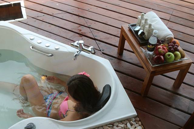 逛累了就休息一下,吃完午饭,等到spa时间到了就去做按摩,回来后在露台泡个按摩浴缸喝点东西,享受密度帕茹时光,等候落日巡航。