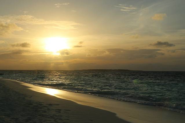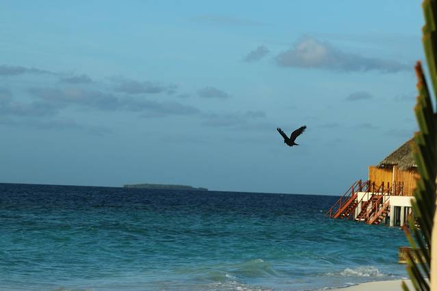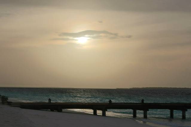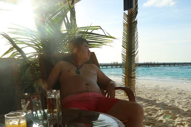 玩了一会后,收拾好东西,换好衣服就开始对这个岛整个的初体验,岛很大主要是沙屋区域,水屋不大就20间。沙屋面积很大,可以去好好走一走,基本上沙屋都是老美子,特别惬意的晒着太阳聊着天,人也比较多,整体岛上绿化非常好,到处都是植被,沙屋也有自己的自助餐厅,我们全程是水屋,所以没有去那吃过,沙屋基本上占据劝导四分之三都得多,我们也就走了全岛不到一半的路,其实要是都走一遍还是挺远的。沙屋住的游客比水屋多很多,但是一点没有拥挤的感觉,安排的合理感觉很私密,可以享受自己度假的悠闲,后来几天没事我们就往沙屋的酒吧跑,话说沙屋酒吧设计的挺好,可以直接看夕阳非常美,光着脚在沙滩上玩,看着夕阳西下,喝一杯啤水,相当完美。