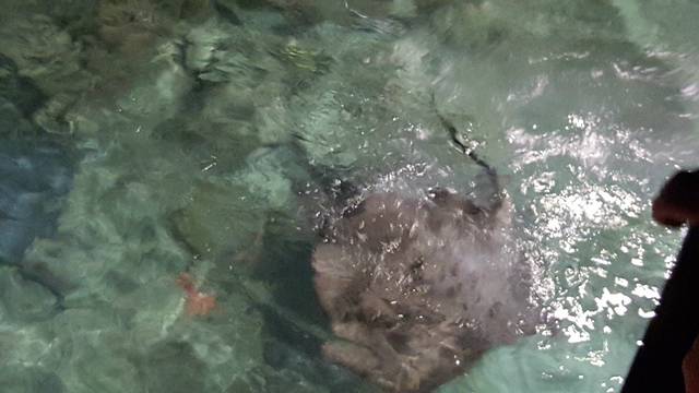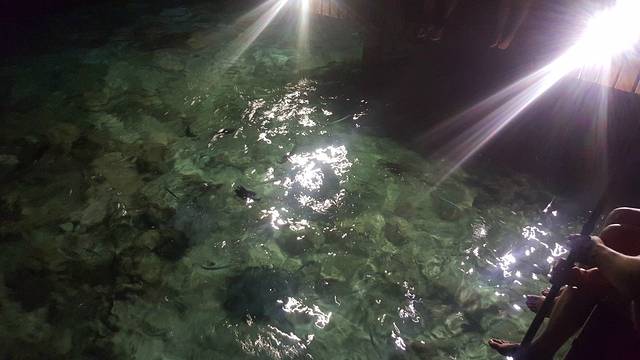 晚上看魔鬼鱼还是很有意思的,好多鱼过来吃食,第一次看魔鬼鱼。