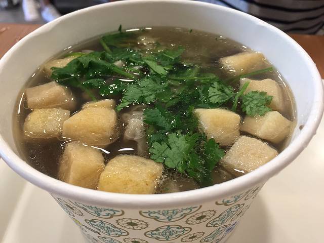 中午吃不饱,来到了老字号金友记牛肉锅贴,叫了一份锅贴一份馄饨,锅贴不是现煎的,吃的是冷的而且不脆,馄饨也一般般,没什么味道。