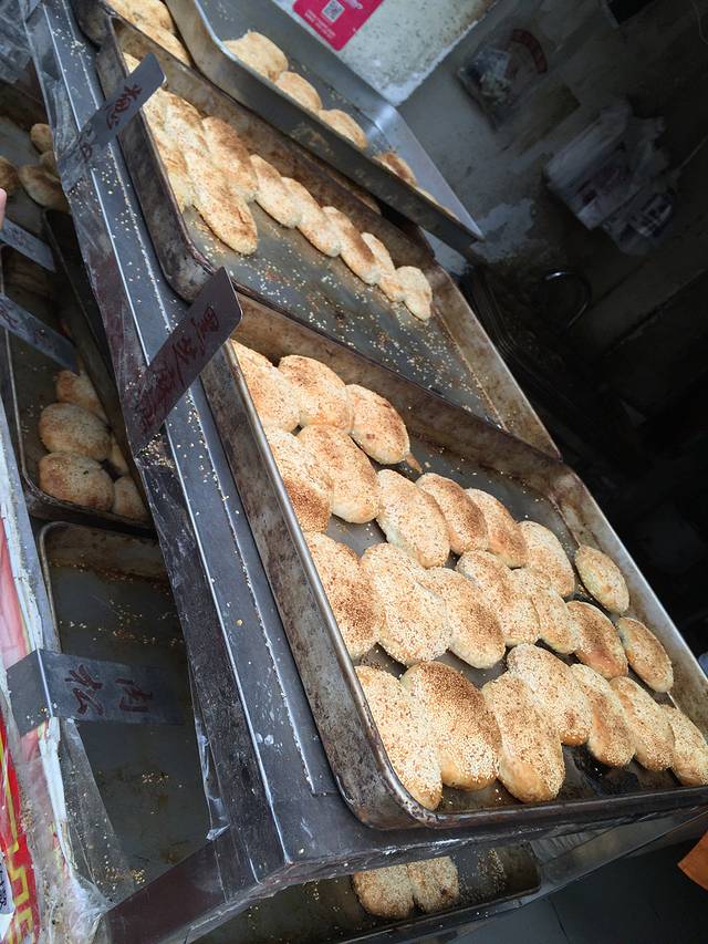 这家酥饼就在鸡鸣汤包的旁边,吃鸡鸣汤包前还没人排队,吃完出来已经排一长龙了,也凑热闹买了一甜一咸吃,皮很酥,觉很咸的比较香。