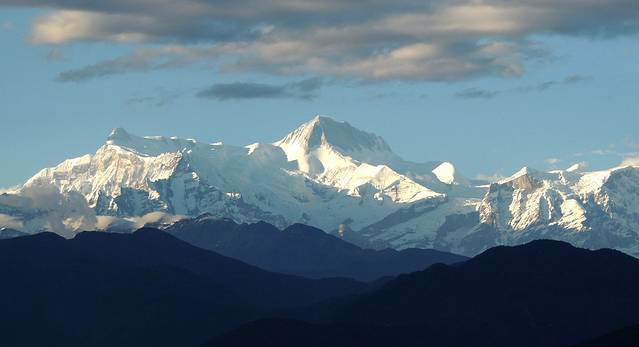 在高地三天都没见到雪山,在谷地看见了,虽然有近景遮挡,但还是很壮观