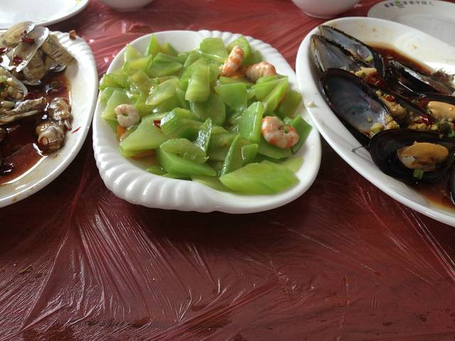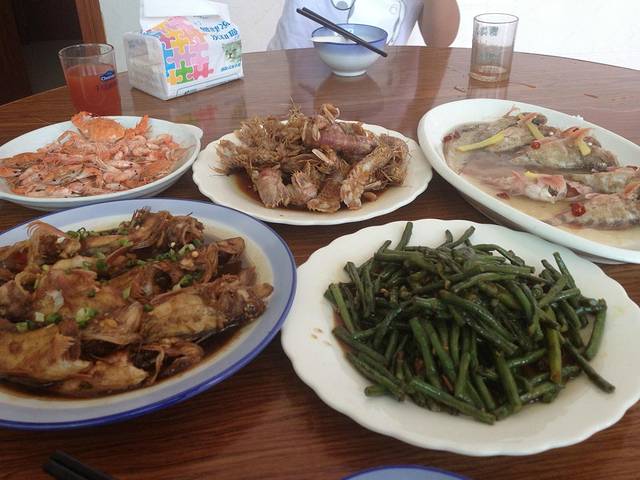 海岛上,以海产品为主。在嵊泗本岛,我们吃的是100的套餐,有皮皮虾和两种海鱼,搭配一个素菜,老板手艺真不错,味道很好,分量也足够三人吃。到了嵊山,是在饭店吃饭,价格普遍比较贵,不过老板烧的味道还是不错的。