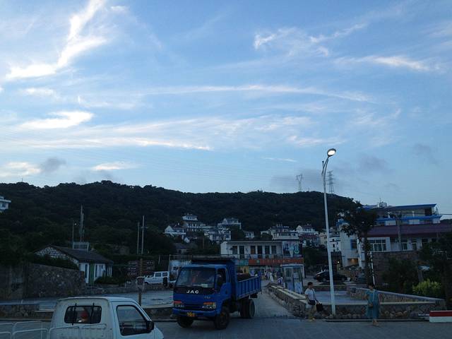 吃过早饭,我们就乘车到菜园镇,在外面坐人力三轮到码头,等待开往枸杞岛的船,枸杞岛和嵊山由一座大桥连接着,所以在任意地方下都可以到两个岛玩。不过全票至少要提前一天购买,因为太紧张了,很多黄牛插队买票,当天很可能买不到。我们买了枸杞岛的船票,还好枸杞岛到嵊山的车很多,嵊山不大,旅馆基本都在镇上,坐车到镇上(终点站)下就可以了。宾馆临街,白天特别吵,关上窗户会好很多,外面很多饭店,大大小小,早餐都不贵,点菜的话稍贵些。中午时间还早,我们稍作休息就包车去了无人村,果然如传说中那么漂亮,去的话记得带驱蚊药水,因为长期无人居住,蚊子特别多,无人村靠海,我们去的时候看到很多小螃蟹,实在太多了,随处可见。