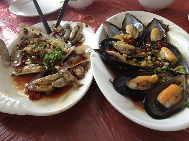 回宾馆的路上,这里是贻贝之乡,海里到处可见