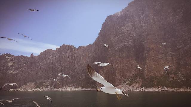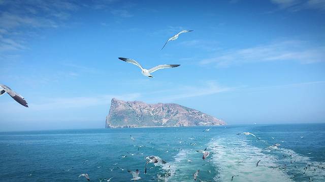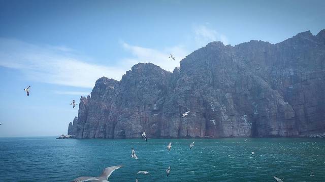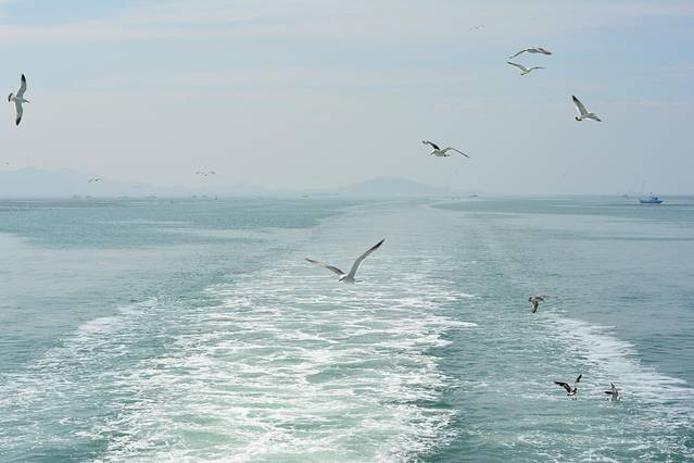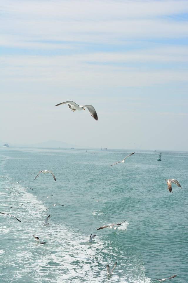 中午到的机场 饭都没吃 就急忙赶往长岛港坐船了 估计是附近海域还没完全人为开发的原因 海水干净的很 海鸥一直在船边打转
