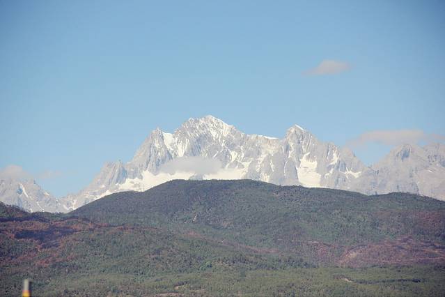 远远看见玉龙雪山。早上出发去泸沽湖。