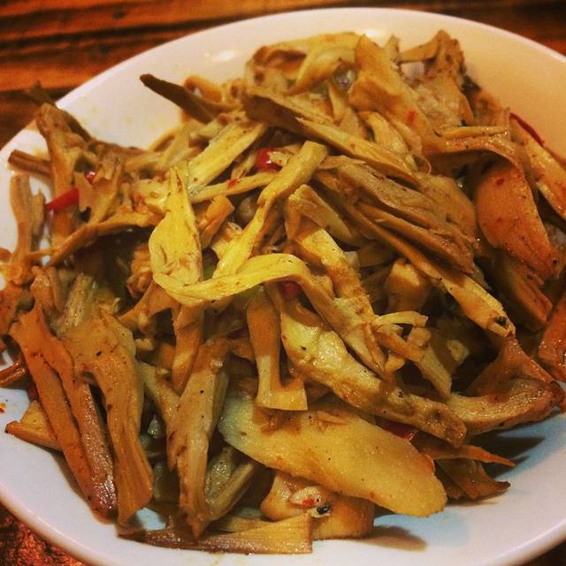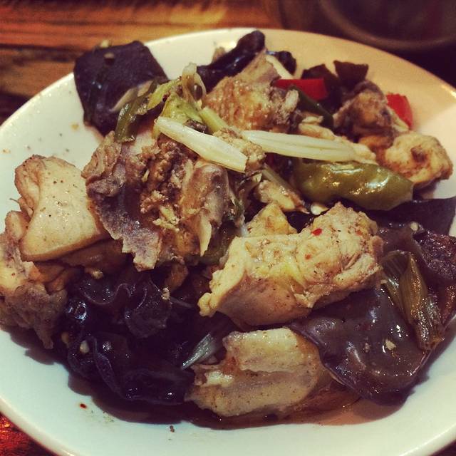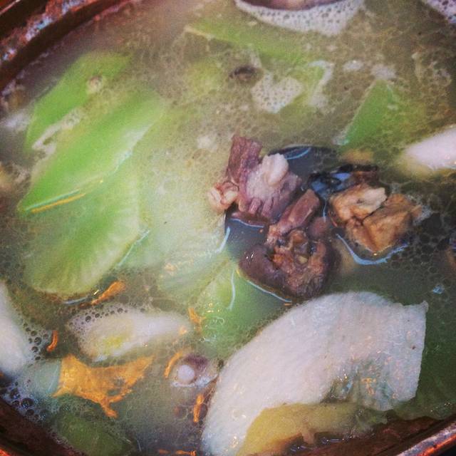 传说中的腊排骨土鸡火锅。本以为是很浓郁的火锅,但是汤头却很清甜,有一股莴笋的清香。