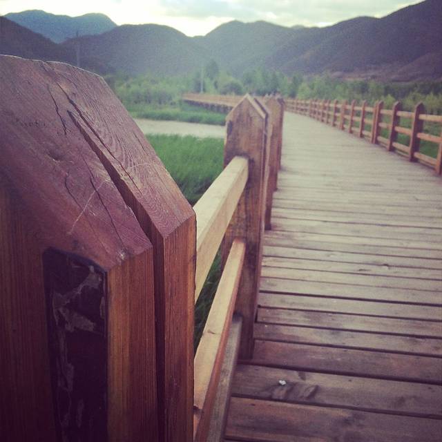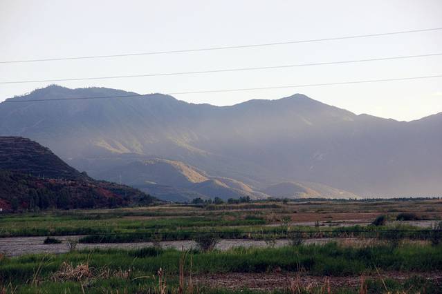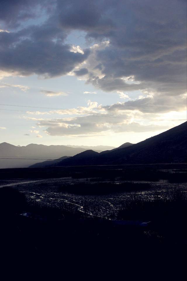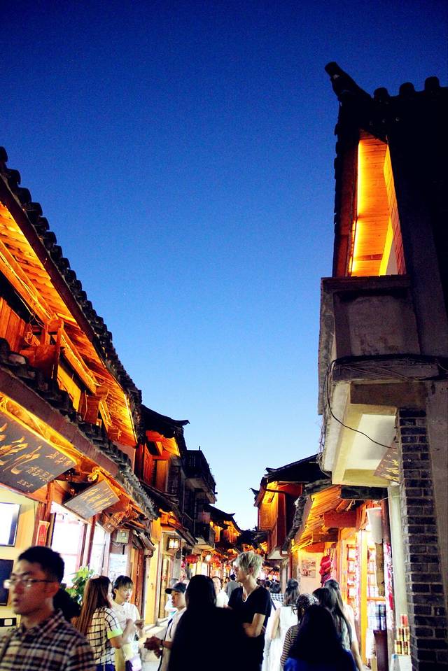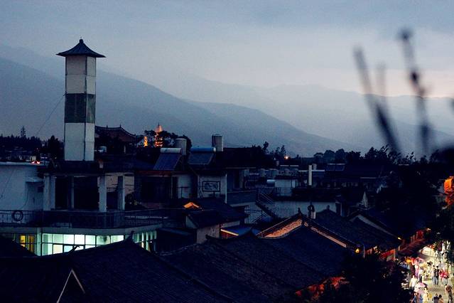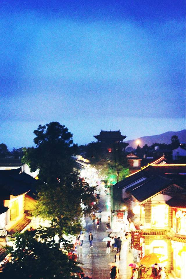 睡了一觉坐早上9点45的硬座 傍晚接近6点到丽江。云南日落很迟,到七八点天还很亮。