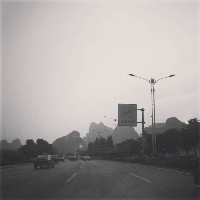 去机场的路上。其实桂林山水还是挺美的。山很美,好像水墨画,水应该是被污染了。。。