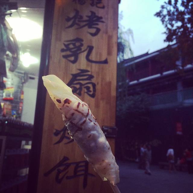 传说中的烤乳扇。吃前有朋友跟我说特好吃,要我一定去尝尝。我天。味道好奇葩,完全吃不来!哭。