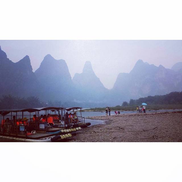 游漓江要选择杨堤-兴坪段喔~ 到桂林汽车站(火车站一起的)有很多拉客去有漓江的,我们跟了一个杨堤的妹子,她老公自己有竹筏,我们坐的就是他们家的竹筏。他告诉我们说要顺流下去,但其实我们看到好多有逆流上来的。可以选择晚点去 那样能看到日落黄昏的桂林山水,这是我们的遗憾之一。