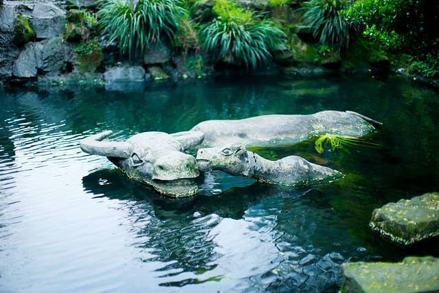 接着我们到了绿油油的地方,河里面有假的河马