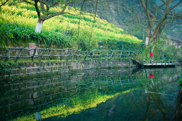 远景拍出来更美哦,油菜花的倒影美美哒,不虚此行。