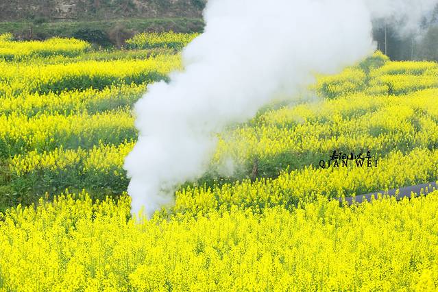 小火车被油菜花淹没了。蒸汽还是一大亮点。