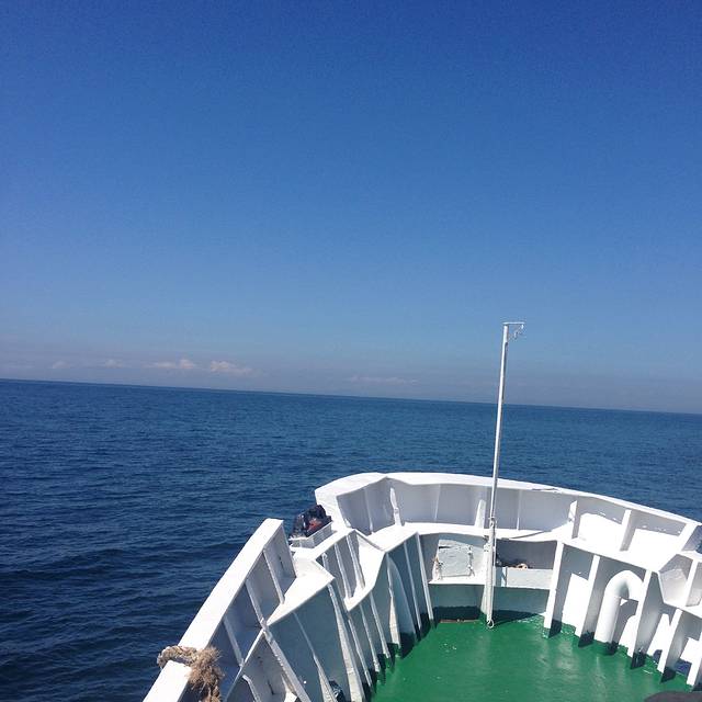 7.18 早 登船,开了三小时抵达庙子湖。海面有超级明显的分界线。