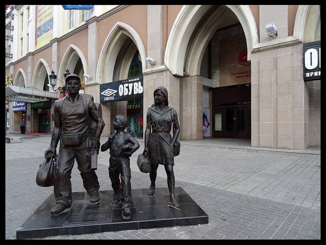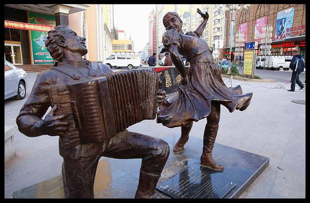 步行街上还有很多像这样充满俄式风情的铜塑,处处提醒着我们,这是距离俄罗斯最近的地方。